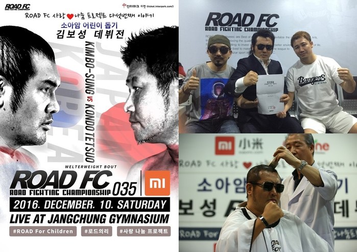김보성은 오는 10일 서울 장충체육관에서 진행되는 샤오미 로드FC 035에서 일본의 베테랑 격투가 콘도 테츠오와 대결을 펼친다. 김보성의 데뷔는 소아암 어린이들을 돕기 위한 것으로 남다른 의미를 가지고 있다. 현재 김보성은 마무리 훈련에 돌입, 3일 남은 데뷔전에 심혈을 기울이고 있다.
