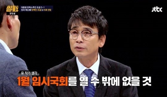 지난 8일 방송된 JTBC ‘썰전’에서 유시민은 박근혜 대통령 탄핵이 가결될 것이라고 예상했다. 그는 탄핵 인용부터 60일 이내에 차기 대통령선거가 실시될 것이라고 내다봤다.