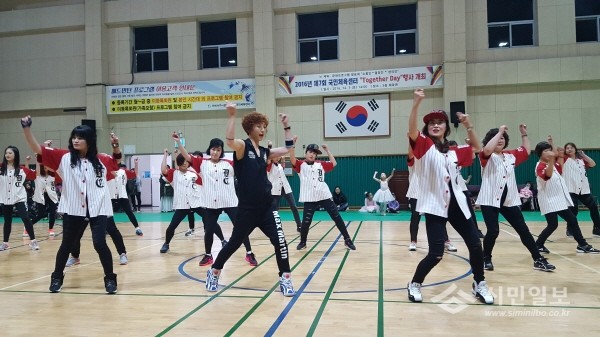 최근 인천 서구국민체육센터는 3층 체육관에서 체육·문화프로그램 수강생들이 1년 동안 배운 기량을 맘껏 발휘하는 '제7회 투게더 데이' 행사를 개최했다. 사진은 에어로빅 프로그램 참가자들이 발표공연을 하는 모습.(사진제공=서구청)