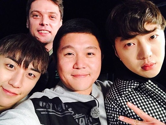 사진 속에는 승리를 비롯해 조세호, 미카엘 셰프, 강승윤이 환한 미소를 지으며 카메라를 바라보고 있다.