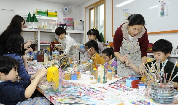 서울 광진구는 지난 9일 오후 화양동 소재 동화마을창작소에서 '핸드메이드 나무소품 만들기'를 진행했다. 사진은 행사에 참여한 어린이들이 나무로 소품을 열심히 만드는 모습.(사진제공=광진구청)