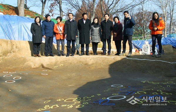 이어 올림픽공원을 방문해 몽촌토성 내 유적발굴 현장을 둘러보며 관계자로부터 발굴 진행사항 및 출토유물 등에 대한 설명을 듣고 향후 정밀 발굴을 통해 역사와 문화 복원을 위한 기초학술자료를 축적해 나갈수 있도록 당부의 말을 남겼다.
