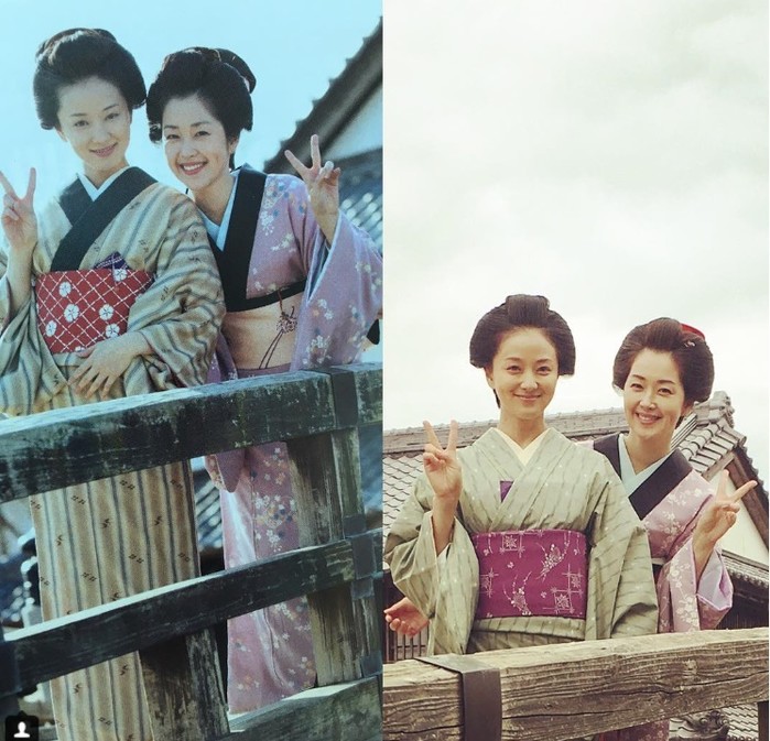 사진 속에는 일본 사극 촬영장에서 기모노를 입고 출연진과 다정한 포즈를 취하고 있는 그의 모습이 담겨 있었다.