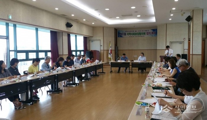 | ▲ 본오1동 지역사회보장협의체는 민간단체, 지역주민 등 40명의 위원으로 구성돼 사회보장급여를 받지 못하는 사각지대를 발굴해서 자원을 연계하고 돕는 역할을 하고 있다. 사진은 지역사회보장협의체 정기 회의를 진행하고 있는 모습. | ||