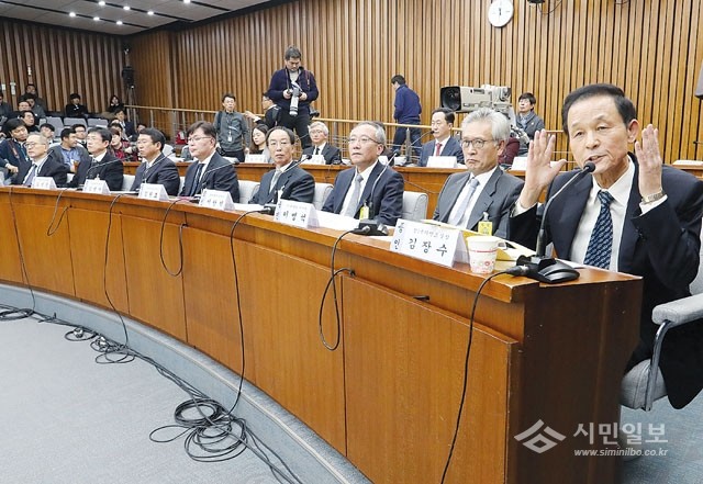 김장수 전 국가안보실장이 14일 오전 국회에서 열린 최순실 국정농단 의혹 진상규명을 위한 국정조사 특위 3차 청문회에서 의원질의에 답변하고 있다.