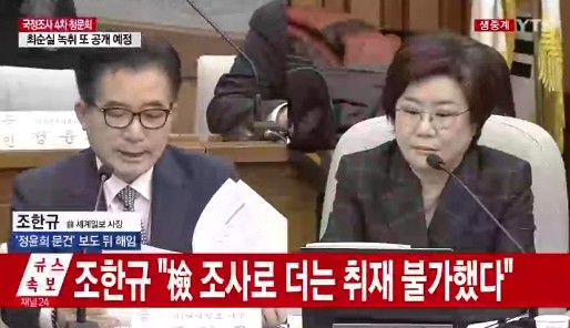 이 소식을 접한 누리꾼들은 "suju**** 놀랍지도 않네" "daeg**** 빙산의 일각일 듯" "taoi**** 이런 폭탄발언이 계속 터져나와야 청문회지" "sams**** 이 드라마 클라이막스가 어디야? 탄핵이 그 시점인줄 알았더만 탄핵이 인트로였어" "wada**** 용기있는 조한규씨 안전을 국회에서 보장해주어야합니다"등 다양한 댓글을 남겼다.