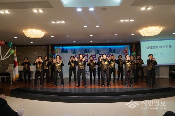 최근 경기 양평군 정신건강증진센터는 정신건강증진센터 회원 등 120여명이 참석한 가운데 ‘소중했던 우리들의 2016년’이라는 주제로 사업 보고회를 개최했다. 사진은 노인들이 실버댄스 공연을 펼치고 있는 모습.(사진제공=양평군청)