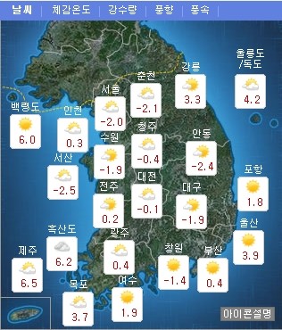 기상청은 토요일인 오늘(17일) 오전 6시 기준 서울과 춘천, 대구의 기온은 영하 2도이지만 나머지 지역에서는 영상권 기온을 나타내고 있다고 예보했다. 낮 최고기온은 12도까지 올라 추위가 풀릴 것으로 내다봤다.