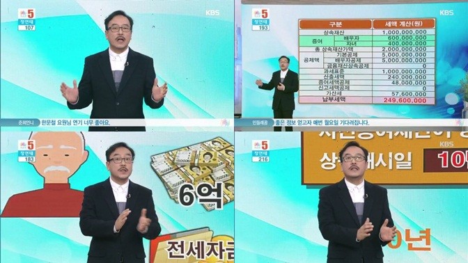12일 오후 방송한 KBS1 '아침마당'에서는 정연태 세무사가 '주는 것도 기술'이라는 주제로 세금증여의 나쁜 예를 들며 시청자들의 이해도를 높였다.