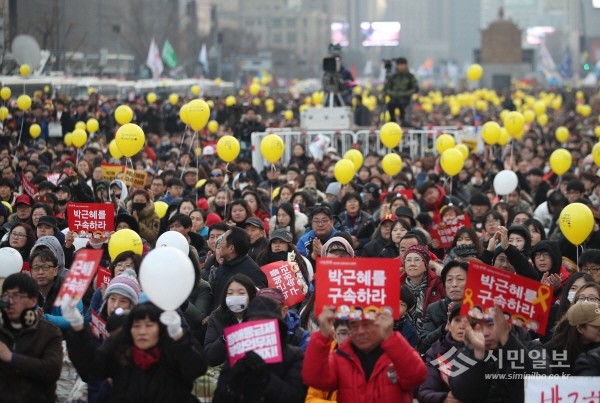17일 오후 서울 종로구 광화문광장에서 열린 박근혜정권퇴진비상국민행동의 8차 촛불집회에서 참가자들이 노란색 풍선을 들고 있다.