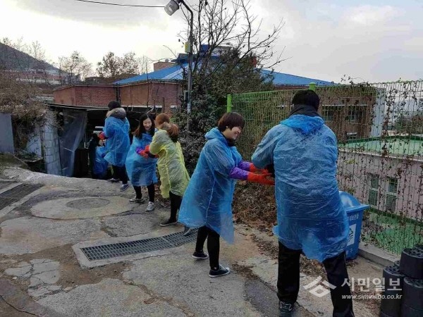 지난 17일 서울 중랑구는 ‘워스와일(Worthwhile) 봉사단’과 함께 면목3·8동에 위치한 저소득 홀몸노인 7가구를 방문해 ‘사랑의 연탄 나눔’ 배달을 실시했다. 사진은 참여자들이 연탄을 나르는 모습.(사진제공=중랑구청)