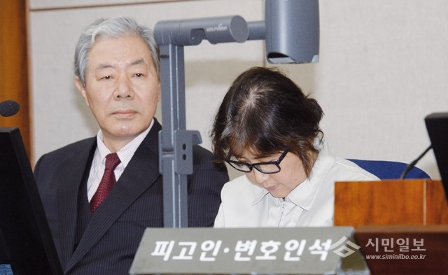 10일 오후 국정농단 관련 첫 재판이 열린 서울중앙지법 대법정에 최순실씨가 참석하고 있다. 이날 지법은 417호 대법정에서 최순실시와 안종법 전 청와대 정책조정수석, 정호성 전 청와대 부속비서관의 첫 공판준비기일을 열었다.