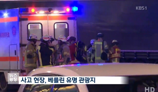 독일 언론에 따르면 19일(현지시간) 베를린 상가에서 크리스마스 쇼핑을 하던 인파에 한 트럭이 덮쳐 약 9명이 숨지고 50명이 부상을 입었다.