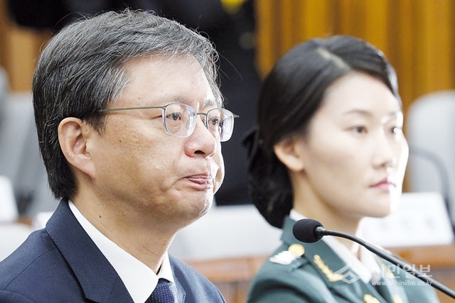 우병우 전 청와대 민정수석이 22일 오전 국회에서 열린 박근혜 정부의 최순실 등 민간인에 의한 국정농단 의혹사건 진상규명을 위한 국정조사 5차 청문회에서 입을 굳게 다문 채 의원질의를 듣고 있다.