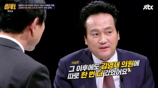 지난 22일 방송된 JTBC '썰전'에서는 안민석, 하태경 의원이 출연해 김구라와 이야기를 나눴다.