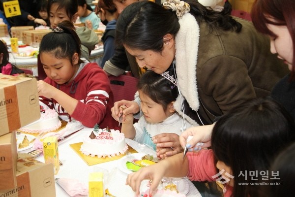 최근 경기 의정부시 드림스타트는 경기도와 신세계 이마트가 함께하는 성탄맞이 희망꾸러미 전달식을 개최했다. 사진은 행사에 참여한 드림스타트 아동들이 크리스마스 케이크를 만드는 모습.(사진제공=의정부시청)