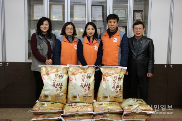 지난 26일 경기 동두천 한국전력공사는 연말연시 이웃돕기 쌀 20kg 20포를 (사)동두천시종합자원봉사센터에 기증했다. 사진은 기증식에 참여한 관계자들이 기념촬영하는 모습.(사진제공=동두천시청)