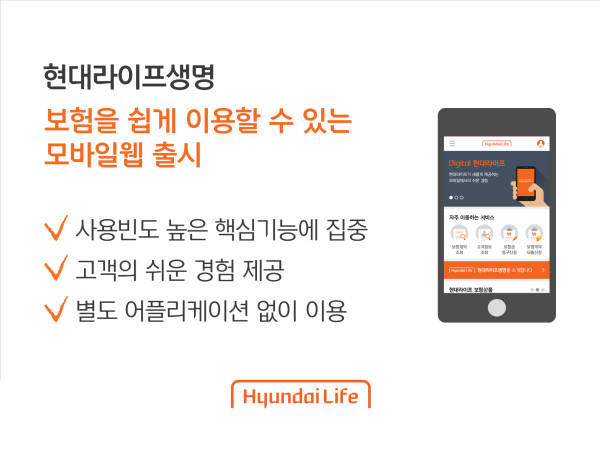 [시민일보=고수현 기자]현대라이프생명은 최근 고객이 언제 어디서든 쉽고 편리하게 보험 서비스를 이용하고 계약사항을 관리할 수 있는 모바일 웹을 출시했다.