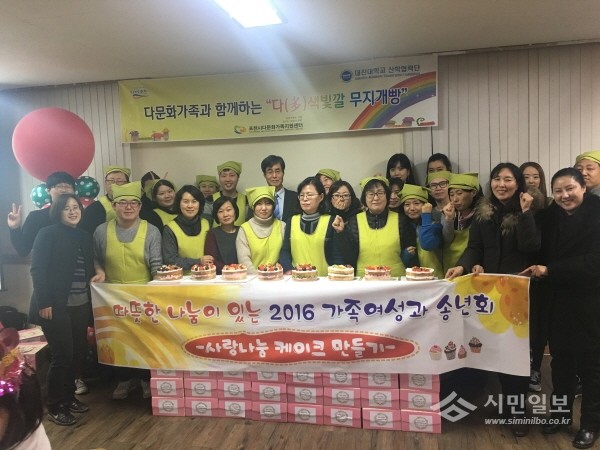 지난 28일 경기 포천시는 연말연시를 맞아 시 다문화가족지원센터와 함께 '다문화가족과 함께하는 다(多)색빛깔 무지개빵' 케이크 만들기 나눔행사를 개최했다. 사진은 관계자들이 기념촬영하는 모습.(사진제공=포천시청)