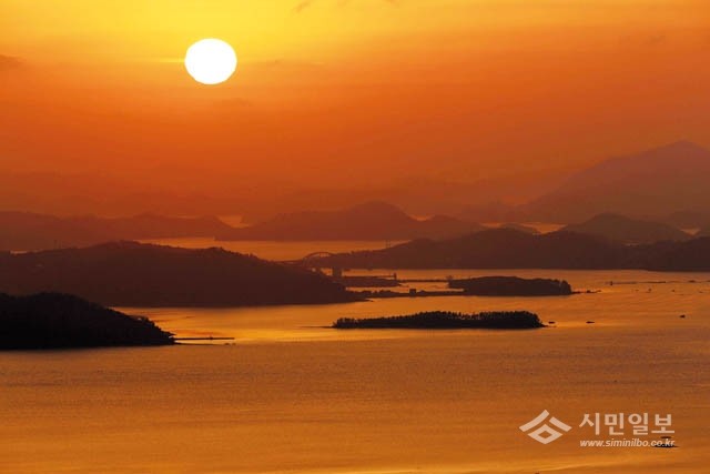 전남 강진군 마량항 위로 차분하게 아침 해가 떠오르고 있다. 강진군 신전면 주작산 전망대에서는 옹기종기 앉은 섬들 사이로 붉게 타오르는 태양을 만날 수 있다.
