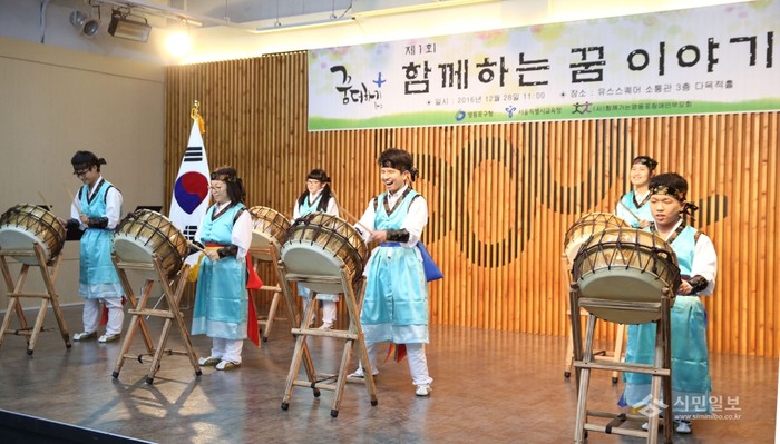 지난 28일 서울 영등포구는 유스스퀘어 소통관 3층 다목적홀에서 '꿈더하기 학교 제1회 함께하는 꿈 이야기' 발표회를 개최했다. 사진은 축하공연이 펼쳐지고 있는 모습.(사진제공=영등포구청)