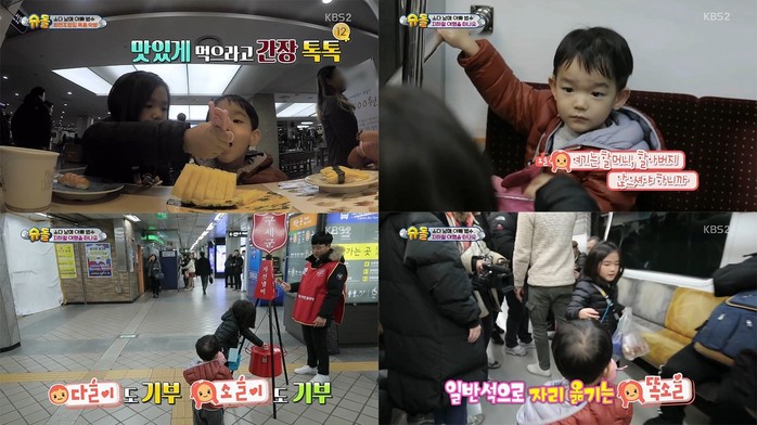 지하철 역에 도착한 소을은 엄마가 준 2만원의 용돈으로 아빠의 털 모자를 제일 먼저 구매해 아빠의 심부름을 해결했다. 이어 배고파하는 동생을 위해 회전초밥집에 들러 다을이가 좋아하는 달걀 초밥부터 파인애플까지 챙겨먹이는 모습을 보였다. 여기에 지하철 이동 구간에서는 구세군 냄비를 지나치지 못하고 용돈을 쪼개 기부하는 것은 물론 다을이게도 돈을 나눠주며 함께 기부하는 세심함도 잊지 않았다.
