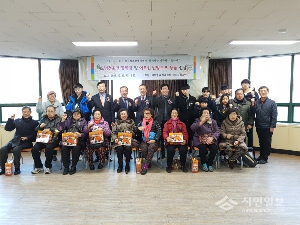 최근 서울 은평구 역촌동은 연말연시를 맞이해 저소득가정 청소년의 미래를 후원하는 '모범 청소년 장학금 전달식'을 가졌다. 사진은 참여자들이 기념촬영을 하는 모습.(사진제공=은평구청)