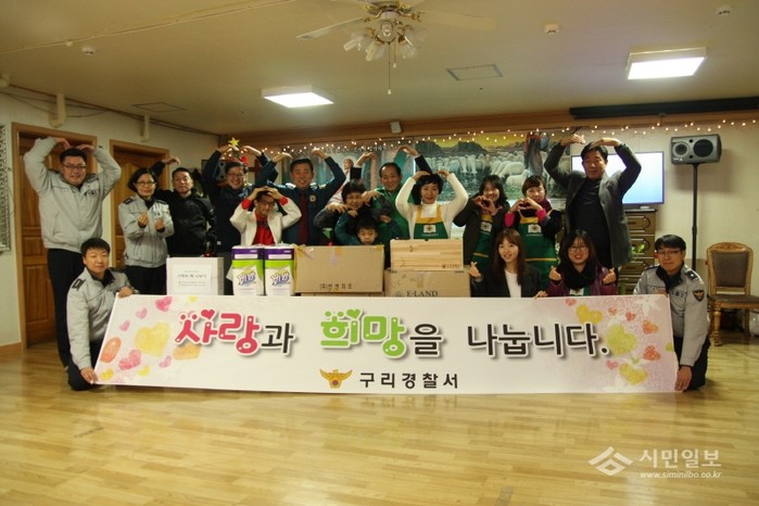 최근 경기 구리경찰서 직원들은 연말연시의 추운 겨울을 맞아 중증 장애시설인 구리시 사노동에 위치한 '한나의 집'을 방문했다. 사진은 최성영 서장 및 직원들이 장애인 및 한나의 집 관계자들과 기념촬영을 하는 모습.(사진제공=구리경찰서)