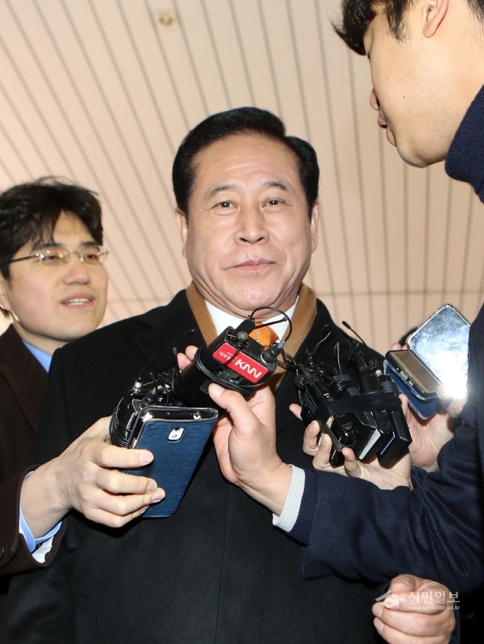 해운대 엘시티(LCT) 금품비리에 연루된 혐의를 받는 새누리당 배덕광 의원이 4일 피의자 신분으로 부산지검으로 들어가면서 취재진의 질문을 받고 있다.