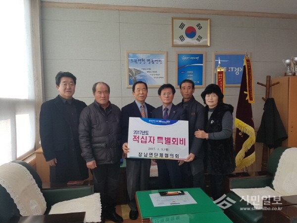 경기 연천군 장남면단체협의회는 최근 정유년 새해를 맞아 취약계층을 위한 인도주의 활동에 사용해 달라고 적십자 특별회비 100만원을 장남면에 기탁했다. 사진은 관계자들이 기념촬영하는 모습.(사진제공=연천군청)