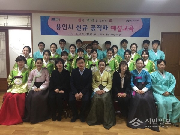 최근 경기 용인시는 처인구 김량장동 소재 예절교육관에서 신규직원 139명을 대상으로 7차례에 걸쳐 ‘용인시 신규 공직자 예절교육’을 실시했다. 사진은 예절교육에 참석한 신규 공직자들이 기념촬영을 하는 모습.(사진제공=용인시청)