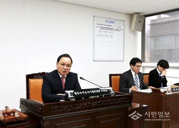 | ▲ 행정사무조사 특별위원회 회의에서 정관훈 위원장이 발언하고 있다. | ||