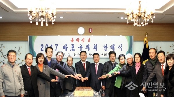[시민일보=고수현 기자]서울 마포구의회(의장 한일용)는 최근 구청 지하 ‘대화의 방’에서 정유년 새해를 맞아 한 해의 발전과 소망의 성취를 다짐하는 ‘신년 단배식(團拜式)’을 개최했다.