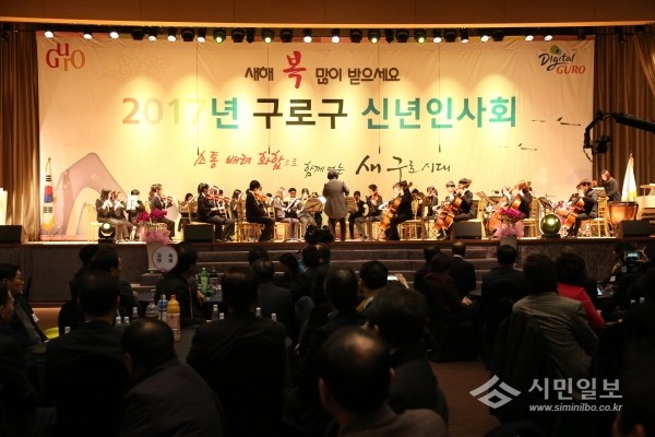 지난 10일 서울 구로구가 신도림 테크노마트 그랜드볼룸에서 지역주민, 시·구의원, 국회의원 등 1500명과 함께하는 ‘2017년 신년인사회’를 개최했다. 사진은 이날 행사 중 진행된 구립청소년오케스트라의 축하공연 모습.(사진제공=구로구청)