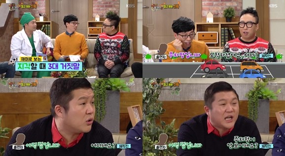 그는 이날 유재석과 박명수가 펼친 '재미로 보는 지각할 때 3대 거짓말' 꽁트를 이어받았다. 이 꽁트는 지각했을 때 거의 다 도착했다는 뉘앙스를 풍기는 것이 웃음 포인트였다.