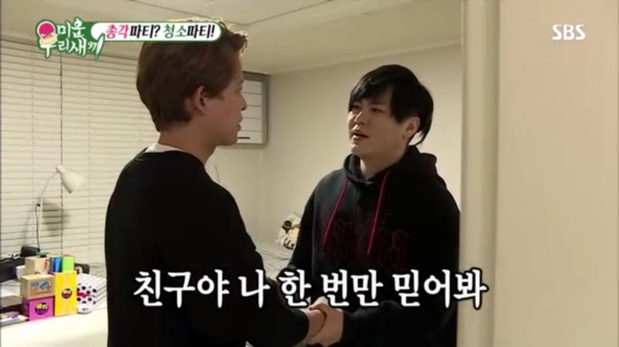 이어 데니안과 문희준은 합심해 토니안의 방을 깨끗히 청소했다. 토니안은 나중에 깨끗해진 방을 보고 깜짝 놀랐다.