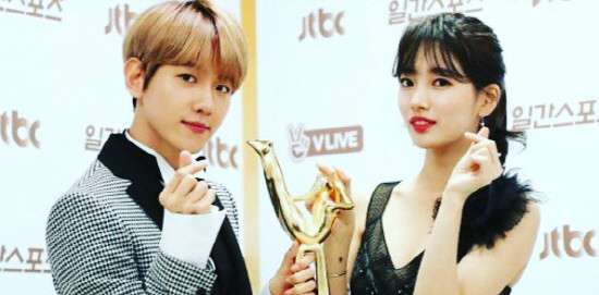 특히 사진 속에서는 수지와 엑소의 백현이 다정한 모습을 보여 눈길을 끈다. 이들은 ‘손가락 하트’까지 나타내며 훈훈함을 더했다.
