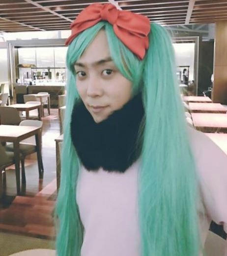 사진 속 초록색 가발과 빨간 리본을 머리에 달고 새침한 표정을 짓고 있는 그는 귀여운 매력으로 시선을 사로잡았다.
