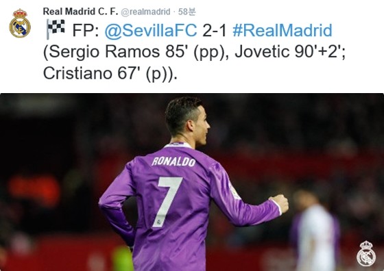 레알 마드리드는 16(한국시간) 스페인 에스타디오 라몬 산체스 피추안에서 열린 2016-2017 프리메라리가 18라운드에서 세비야에 1-2로 패했다.