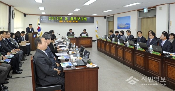 지난 12일 서울 광진구가 구청 기획상황실에서 ‘2017년 동 업무보고회’를 개최했다. 사진은 갑(중곡1~4동, 능동, 구의2동, 광장동, 군자동) 지역 동 업무보고회 모습.(사진제공=광진구청)