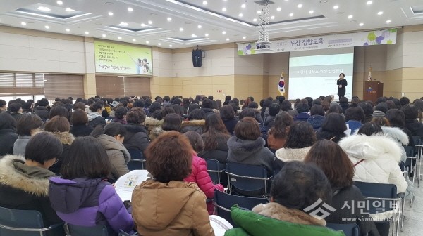 지난 18일 서울 구로구 어린이급식관리지원센터가 육아종합지원센터와 함께 지역내 어린이집, 유치원 원장 200여명을 대상으로 영양·위생 교육을 실시했다. 사진은 교육 참석자들이 교육받고 있는 모습.(사진제공=구로구청)