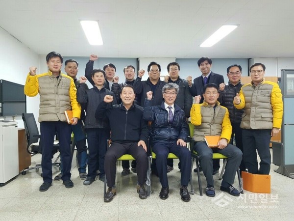 경기 포천시는 19일 한국국토정보공사 포천지사에서 변긍수 민원토지과장, 김용국 한국국토정보공사 포천지사장 등이 참석한 가운데 지적측량 민원서비스 향상을 위한 간담회를 실시했다. 사진은 참여자들이 기념촬영하는 모습.(사진제공=포천시청)