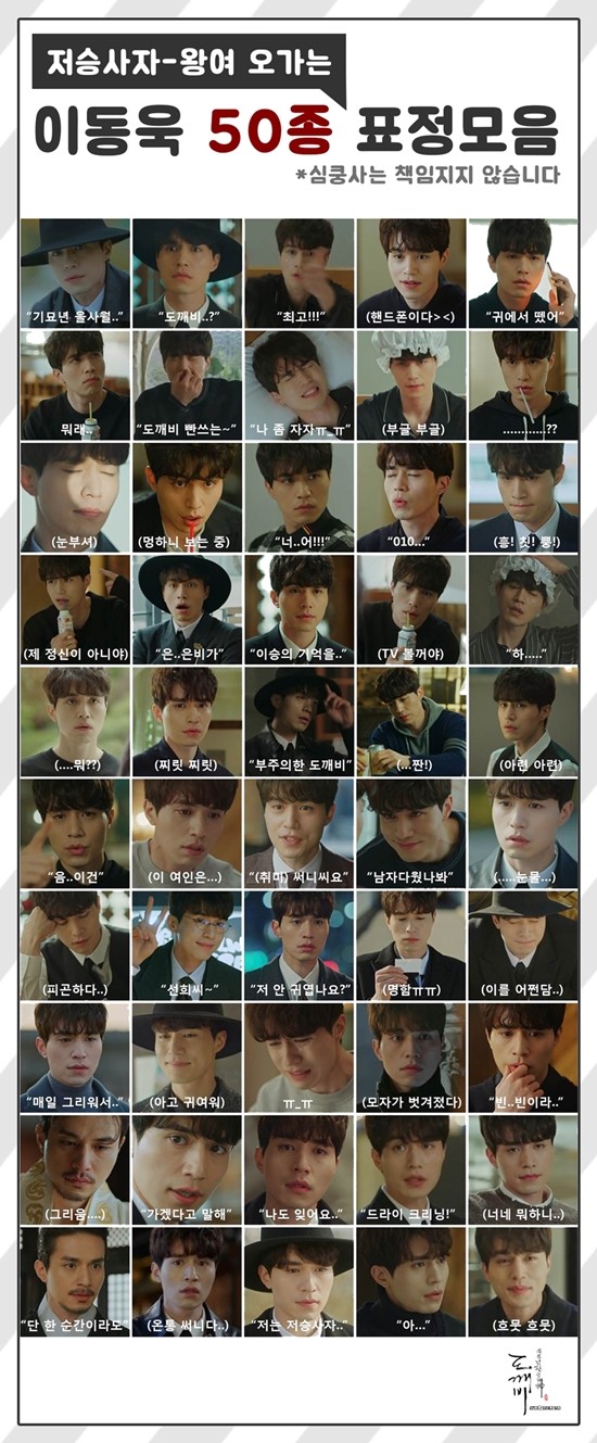 극중 과묵한 캐릭터인 이동욱은 대사가 많이 없음에도 다양한 표정으로 시청자들을 사로잡고 있으며 공개된 사진 속 이동욱은 50가지 표정으로 명불허전 '표정부자'임을 입증했다.