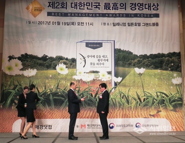 한편 대한민국 최고의 경영대상은 산업통상자원부와 미래창조과학부의 후원을 통해 매경닷컴이 주최하는 대회로 산학연 전문가들로 구성된 심사위원단이 해마다 각 부문별로 수상기업을 선정하고 있다.
