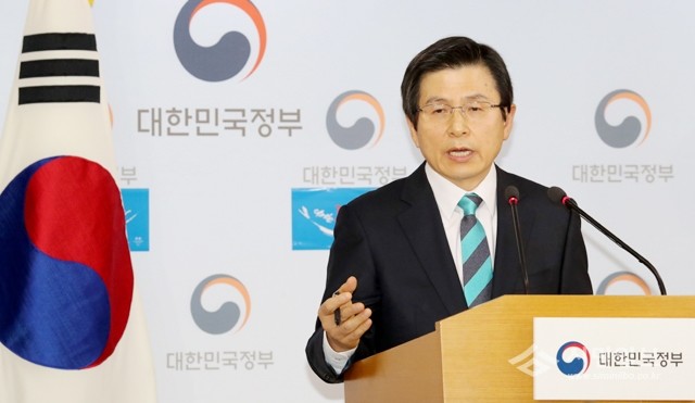 황교안 대통령 권한대행 국무총리가 23일 오전 정부서울청사에서 열린 신년 기자회견에서 취재진의 질문에 답변하고 있다.