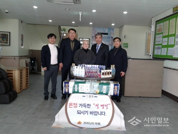 | ▲ 설 명절을 앞두고 사회복지시설을 방문해 위문품을 전달한 전라남도의회 임흥빈 의원(오른쪽에서 세번째). | ||