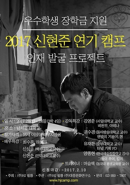 한편 '신현준 연기 캠프 인재발굴 프로젝트'는 17세 이상의 배우 지망생을 대상으로 이뤄지며 공식 홈페이지를 통해 오는 2월 10일까지 신청 접수를 받는다.