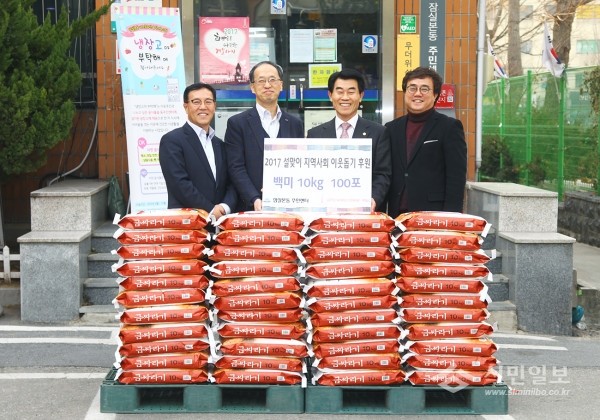 최근 안성화 서울 송파구의장은 롯데물산으로부터 후원 받은 쌀 100포를 지역내 어려운 이웃들에게 직접 전달하는 행사에 참석했다. 사진은 안 의장(오른쪽 두번째)과 관계자들이 전달에 앞서 기념사진 촬영을 하는 모습.(사진제공=송파구의회)