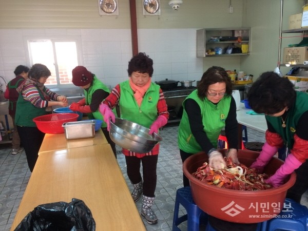 최근 경기 동두천시 소요동 새마을부녀회가 다가오는 설을 맞아 지역 저소득층 홀몸노인 25가구에 전달할 ‘사랑의 밑반찬’을 만들었다. 사진은 반찬을 만들기 위해 불고기를 버무리고 있는 새마을부녀회원들의 모습.(사진제공=동두천시청)