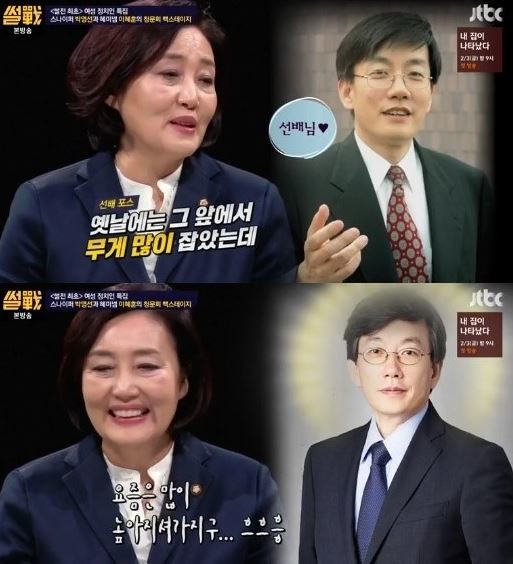 더불어민주당 박영선 의원은 지난 26일 방송된 JTBC '썰전'에 출연했다. 이날 '썰전'에는 박영선과 함께 바른 정당 이혜훈 의원이 출연해 시청자들의 눈길을 끌었다.